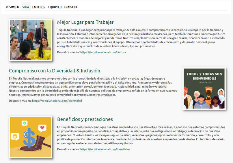 Nuestro enfoque se centra en mostrar la cultura única y las oportunidades dentro de la industria. A través de TequilaJobs.com, las empresas pueden comunicar eficazmente su mensaje de marca, atraer al talento más adecuado y consolidar su posición como empleadores preferidos, aprovechando nuestra moderna plataforma.